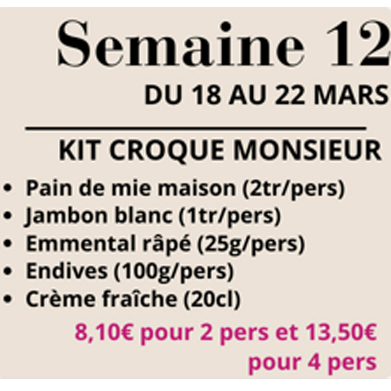 Sur réservation au 0643753455, avant dimanche 6 avril, après cette date selon dispo. Retrait du 9 au 12 avril.
